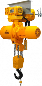 Talha elétrica acoplada ao trole mecânico, sendo acionada por uma corrente Capacidades 500 e 1000 kg. Dimensões e características construtivas....